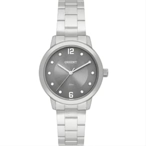 Relógio Orient Elegante Feminino FBSS0135 G2SX Características dos Modelos: Mecanismo: Analógico; Cor da Caixa: Prateado; Cor da Pulseira: Prateado; Cor do Fundo: Cinza; Material da Caixa: Aço Inoxidável; Material da Pulseira: Aço Inoxidável; Material do mostrador: cristal mineral; Fecho: Borboleta. Características Técnicas: Espessura Caixa: 7.4mm; Diâmetro Caixa: 34.4mm; Diâmetro Visor: 26.2mm; Largura Pulseira: 14.1mm; Largura Pulseira Base: 15.7mm; Circunferência da Pulseira: 18cm; Circunferência da Pulseira com a Caixa: 22,2cm; Peso do relógio sem a embalagem: 66g; Fundo do Relógio: Pressão.