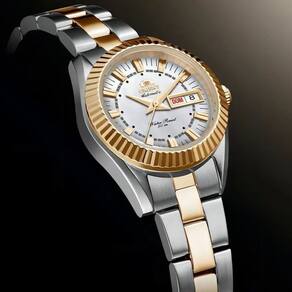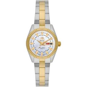 Marca: Orient Referência: NH6MM005 B1SX Gênero: Feminino Cor da Pulseira: Bicolor (prateado e dourado) Cor da Caixa: Bicolor (prateado e dourado) Material da Pulseira: Aço inoxidável Material da Caixa: Aço inoxidável Tamanho da Caixa: 24?mm Espessura da Caixa: 10?mm Resistência à água: 5 ATM / 50 metros Tipo de movimento: Automático (com enrolamento manual) Características do vidro: Cristal mineral