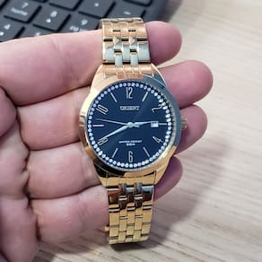 Marca: Orient Modelo: FGSS1238P2KX Tipo de relógio: Analógico Gênero: Feminino Cor da caixa: Dourado Cor da pulseira: Dourado Estilo: Casual Alarme: Não Cronômetro: Não Calendário: Sim Luz: Não Resistência à água: Sim – 5 ATM = 50 metros Tipo de fecho: Dobrável, com trava lateral Material da caixa: Aço Inoxidável Material da pulseira: Aço Inoxidável Características do vidro: Vidro mineral Tamanho da caixa: 38 mm Espessura da caixa: 9 mm Comprimento da pulseira: 24 cm Largura da pulseira: 17,7 mm na junção com a caixa Tampa do fundo: Rosqueado Peso: 86 Gramas Alimentação: Bateria Garantia do Fabricante: 12 meses Fabricante: Orient Relógios da Amazônia LTDA