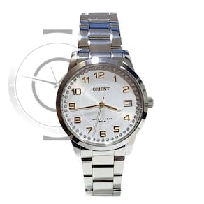 Marca: Orient Modelo: FBSS1192 S2SX Tipo de relógio: Analógico Gênero: Feminino Cor da caixa: Prateado Cor da pulseira: Prateado Estilo: Casual Alarme: Não Cronômetro: Não Calendário: Sim Luz: Não Resistência à água: Sim – 5 ATM = 50 metros Tipo de fecho: Dobrável, com trava lateral Material da Caixa: Aço Inoxidável Material da Pulseira: Aço Inoxidável Características do vidro: Cristal Mineral Tamanho da caixa: 36 mm Espessura da caixa: 9 mm Peso: 83 g Comprimento da pulseira: 24 cm Largura da pulseira: 16 mm Tampa do fundo: Rosqueado Alimentação: Bateria Garantia do Fabricante: 12 meses Fabricante: Orient Relógios da Amazônia LTDA