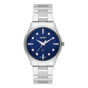 Relógio Orient Feminino Analógico Casual Prata FBSS0082 B3SXMarca: OrientModelo: FBSS0082 B3SXTipo de mostrador: AnalógicoMecanismo: QuartzoAlimentação: BateriaFormato da Caixa: RedondoCor do mostrador: Madrepérola com index e ponteiros na cor prataCor da caixa: PrataCor da pulseira: PrataMaterial do Vidro: Cristal MineralMaterial da caixa: Aço InoxMaterial da pulseira: Aço InoxTipo de Fecho: Dobrável com 2 botõesNível de Resistência à Água: 50MTCalendário: NãoCronômetro: NãoAlarme: NãoLuz noturna: NãoMedidas:Diâmetro da Caixa: 3,5cmEspessura da Caixa: 0,87cmLargura da Pulseira: 1,7cmPeso do Relógio: 79g Ean: 7891529165768