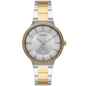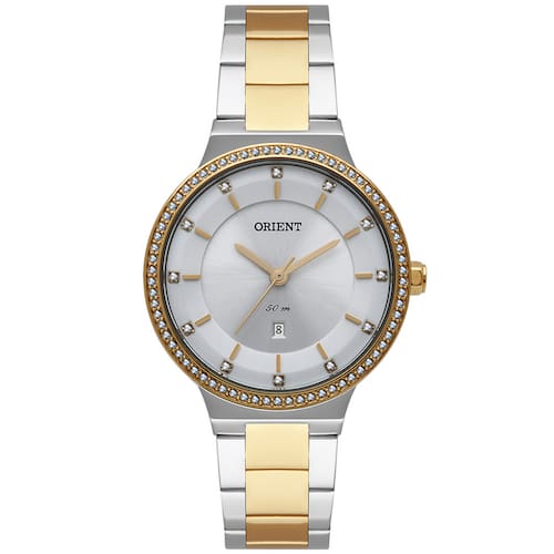 Caixa: Aço Inoxidável na Cor Prateada com Dourada