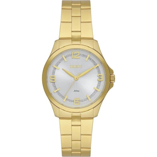 Relógio Orient Feminino Ref: Fgss0227 S2kx Casual Dourado DESCRIÇÃO DO PRODUTO: Caixa: Aço Pulseira: Aço Medida da caixa: 32MM Vidro: Cristal Mineral Alimentação do maquinário: Bateria Resistência à água: 30 m Funções: Analógico Mostrador Prateado com Brilho e Números Fundo de Pressão