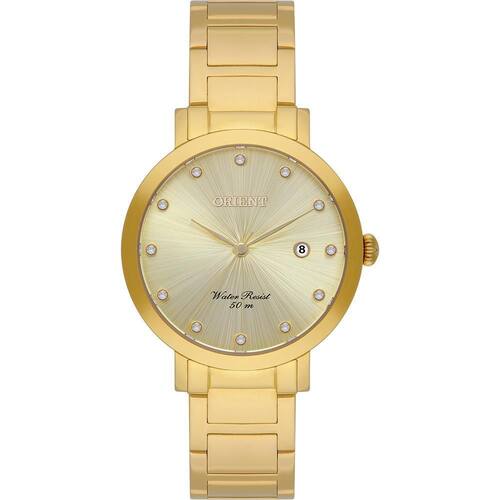 Relógio Orient Feminino Ref: Fgss1257 C1kx Casual Dourado DESCRIÇÃO DO PRODUTO: Caixa: Aço Pulseira: Aço Medida da caixa: 36MM Vidro: Cristal Mineral Alimentação do maquinário: Bateria Resistência à água: 50 m Funções: Analógico, Calendário Mostrador Champanhe com Pedras Fundo Rosqueado de 1 ano Marca: Não Informado Ean: 7891529240298