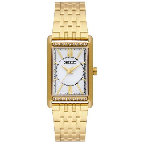 Relógio Orient Feminino Ref: Lgss0061 B3kx Retangular Prateado DESCRIÇÃO DO PRODUTO: Caixa: Aço Pulseira: Aço Medida da caixa: 23MM x 29MM Vidro: Cristal Mineral Alimentação do maquinário: Bateria Resistência à água: 30m Funções: Analógico, Calendário Mostrador Branco com Pedras e algarismos romanos Fundo de 1 ano Marca: Não Informado