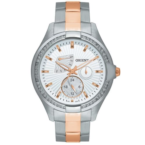 Relógio Orient Feminino FTSSM013 S1SR Quartz Gênero: Feminino Visor: Branco Vidro: Cristal Mineral Funções: Multifunçao Pressão: 50M Características: com caixa Aço inoxidável e pulseira Aço inoxidável Diâmetro da caixa: 35mm Garantia: 1 ano