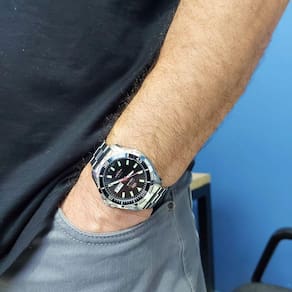 Marca: Orient Modelo: 469SS078F P1SX Tipo de relógio: Analógico Gênero: Masculino Cor da caixa: Prateado Cor da pulseira: Prateado Estilo: Casual Alarme: Não Cronômetro: Não Calendário: Sim Luz: Não – ponteiros e marcadores fluorescentes Resistência à água: Sim – 10 ATM = 100 metros Tipo de fecho: Dobrável com trava lateral e trava de segurança Material da Caixa: Aço Inoxidável Material da Pulseira: Aço Inoxidável Características do vidro: Cristal Mineral Tamanho da caixa: 47 mm Espessura da caixa: 15 mm Peso: 177 g Comprimento da pulseira: 24 cm Largura da pulseira: 20 mm Tampa do fundo: Rosqueado Alimentação: Automático Garantia do Fabricante: 12 meses Fabricante: Orient Relógios da Amazônia LTDA