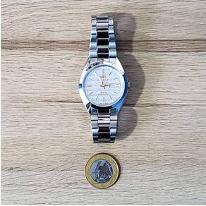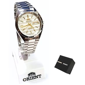 Marca: Orient Modelo: 469WA3F B1SX Tipo de relógio: Analógico Gênero: Masculino Cor da caixa: Prateado Cor da pulseira: Prateado Estilo: Casual Alarme: Não Cronômetro: Não Calendário: Sim Luz: Não – marcadores e ponteiros fluorescentes Resistência à água: Sim – Rotinas diárias Tipo de fecho: Dobrável Material da Caixa: Aço Inoxidável Material da Pulseira: Aço Inoxidável Características do vidro: Cristal mineral Tamanho da caixa: 47 mm Espessura da caixa: 12 mm Peso: 87 g Comprimento da pulseira: 22 cm Largura da pulseira: 16 mm Tampa do fundo: Rosqueado Alimentação: Automático Garantia do Fabricante: 12 meses Fabricante: Orient Relógios da Amazônia LTDA