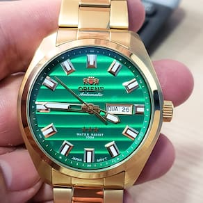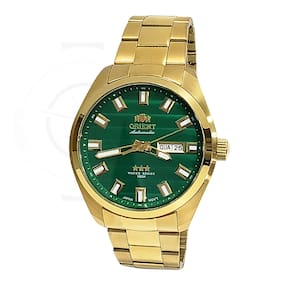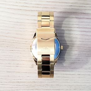Marca: Orient Modelo: 469GP076F E1KX Tipo de relógio: Analógico Gênero: Masculino Cor da caixa: Dourado Cor da pulseira: Dourado Estilo: Casual Alarme: Não Cronômetro: Não Calendário: Sim Luz: Não – ponteiros e marcadores fluorescentes Resistência à água: Sim – 10 ATM = 100 metros Tipo de fecho: Dobrável, com trava de segurança Material da caixa: Aço Inoxidável Material da pulseira: Aço Inoxidável Características do vidro: Vidro mineral Tamanho da caixa: 45 mm Espessura da caixa: 14 mm Comprimento da pulseira: 24 cm Largura da pulseira: 20 mm Tampa do fundo: Rosqueado Peso: 130 Gramas Alimentação: Automático Garantia do Fabricante: 12 meses Fabricante: Orient Relógios da Amazônia LTDA