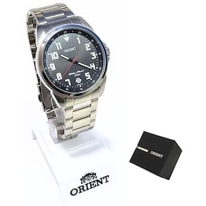 Marca: Orient Modelo: MBSS1154A P2SX Tipo de relógio: Analógico Gênero: Masculino Cor da caixa: Prateado Cor da pulseira: Prateado Estilo: Casual Alarme: Não Cronômetro: Não Calendário: Sim Luz: Não – ponteiros e marcadores fluorescentes Resistência à água: Sim – 5 ATM = 50 metros Tipo de fecho: Dobrável, com trava lateral Material da Caixa: Aço Inoxidável Material da Pulseira: Aço Inoxidável Características do vidro: Cristal Mineral Tamanho da caixa: 41 mm Espessura da caixa: 10 mm Comprimento da pulseira: 24 cm Largura da pulseira: 20 mm Tampa do fundo: Rosqueado Peso: 112 Gramas Alimentação: Bateria Garantia do Fabricante: 12 meses Fabricante: Orient Relógios da Amazônia LTDA