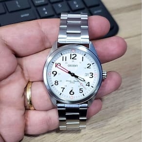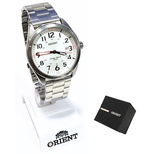 Marca: Orient Modelo: MBSS1396 S2SX Tipo de relógio: Analógico Gênero: Masculino Cor da caixa: Prateado Cor da pulseira: Prateado Estilo: Casual Alarme: Não Cronômetro: Não Calendário: Sim Luz: Não – ponteiros fluorescentes Resistência à água: Sim – 5 ATM = 50 metros Tipo de fecho: Dobrável, com trava lateral Material da Caixa: Aço Inoxidável Material da Pulseira: Aço Inoxidável Características do vidro: Cristal Mineral Tamanho da caixa: 42 mm Espessura da caixa: 9 mm Comprimento da pulseira: 23 cm Largura da pulseira: 20 mm Tampa do fundo: Rosqueado Peso: 108 Gramas Alimentação: Bateria Garantia do Fabricante: 12 meses Fabricante: Orient Relógios da Amazônia LTDA