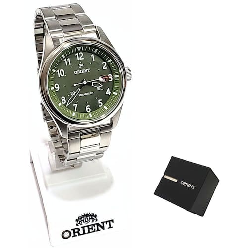 Marca: Orient Modelo: MBSS1446 E2SX Tipo de relógio: Analógico Gênero: Masculino Cor da caixa: Prateado Cor da pulseira: Prateado Estilo: Casual Alarme: Não Cronômetro: Não Calendário: Sim Luz: Não – ponteiros e marcadores fluorescentes Resistência à água: Sim – 10 ATM = 100 metros Tipo de fecho: Dobrável, com trava de segurança Material da caixa: Aço Inoxidável Material da Pulseira: Aço Inoxidável Características do vidro: Cristal Mineral Tamanho da caixa: 42 mm Espessura da caixa: 12 mm Comprimento da pulseira: 24 cm Largura da pulseira: 20 mm Tampa do fundo: Rosqueado Peso: 121 Gramas Alimentação: Bateria carregamento solar Garantia do Fabricante: 12 meses Fabricante: Orient Relógios da Amazônia LTDA