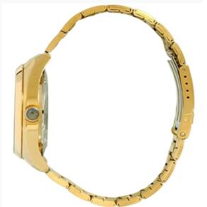 Referência do fabricante: 469gp076nh e1kx Cor da pulseira: dourado Material da pulseira: aço inoxidável Tamanho da pulseira: aproximadamente 22 cm Cor da caixa: dourado Diâmetro da caixa: 43mm - grande Espessura da caixa: 13mm Material do vidro: cristal mineral