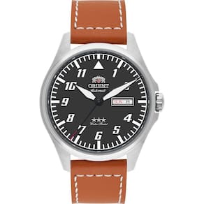 Especificações Técnicas: Marca: Orient Referência: YN6SC010P2MX Gênero: Masculino Cor da Pulseira: Marrom Cor da Caixa: Prata Material Da Pulseira: Couro Material Da Caixa: Aço inox Tamanho da Caixa: 42 mm (aprox.) Resistência à água: 100 metros (10 ATM) Tipo de movimento: Automático Tipo de tela: Analógica Características do vidro: Cristal de safira