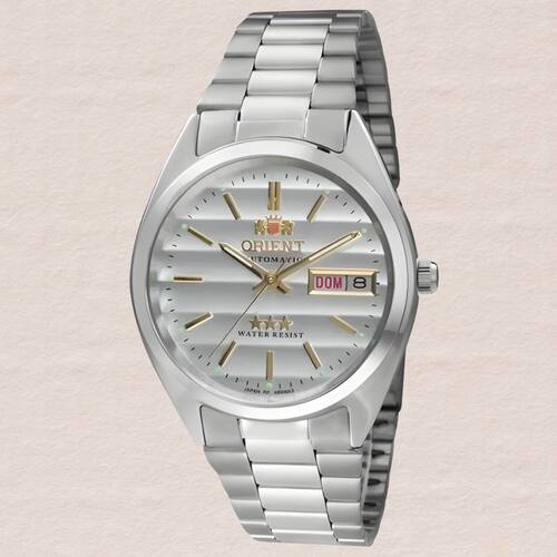 O Orient Masculino Automático Prata 469WA3NH B1SX combina tradição relojoeira com um visual clássico que nunca sai de moda. Sua caixa e pulseira em aço inox entregam presença sofisticada, enquanto o mostrador prata garante leitura limpa e elegante. O movimento automático oferece autonomia aproximada de 40 horas e fluidez mecânica impecável, acompanhado por calendário completo com dia e mês. Resistente à água para o uso cotidiano, vidro mineral durável e construção sólida tornam este modelo uma escolha segura para quem valoriza estilo, confiabilidade e um toque tradicional no pulso.