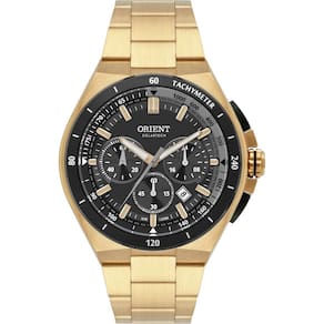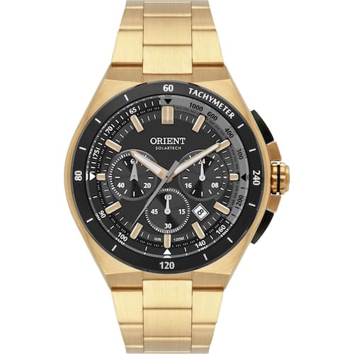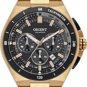 Marca: Orient Referência: MGSSC067 G1KX Gênero: Masculino Cor da Pulseira: Dourado Cor da Caixa: Dourado Material da Pulseira: Aço inoxidável Material da Caixa: Aço inoxidável Tamanho da Caixa: 44 mm Resistência à água: 10 ATM / 100 metros Tipo de movimento: Analógico movido a energia solar Características do vidro: Cristal mineral Funções adicionais: Cronógrafo de 60 minutos, taquímetro, calendário do dia do mês, formato 12/24 horas