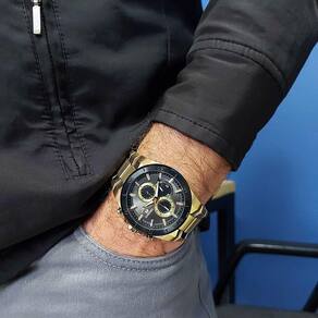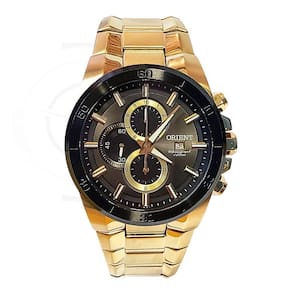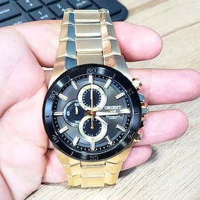 Marca: Orient Modelo: MGSSC004 G1KX Tipo de relógio: Analógico Gênero: Masculino Cor da caixa: Dourado Cor da pulseira: Dourado Estilo: Casual Alarme: Não Cronógrafo: Sim Calendário: Sim Luz: Não – ponteiros e marcadores fluorescentes Resistência à água: Sim – 10 ATM = 100 metros Tipo de fecho: Dobrável, com trava lateral Material da Caixa: Aço Inoxidável Material da Pulseira: Aço Inoxidável Características do vidro: Cristal Mineral Tamanho da caixa: 50 mm Espessura da caixa: 13 mm Comprimento da pulseira: 26 cm Largura da pulseira: 24 mm Tampa do fundo: Rosqueado Peso: 239 Gramas Alimentação: Bateria Garantia do Fabricante: 12 meses Fabricante: Orient Relógios da Amazônia LTDA