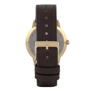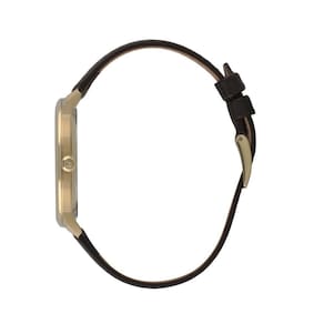 A caixa dourada em aço inoxidável, combinada com a pulseira em couro marrom, traz um estilo clássico atemporal aquele tipo de relógio que nunca sai de moda. Além disso, o modelo conta com vidro em cristal de safira, altamente resistente a riscos, elevando o nível de durabilidade.