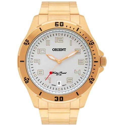 Relógio ORIENT MGSS1105A S2KX Masculino / Analógico / Grande Funções - Analógico - Calendário dia do mês Características - Analógico / Quartz - Coroa: Simples - Tampa posterior : Rosqueado - Resistência à água : 50m - Vidro : Cristal Mineral - Mostrador Prata - Material da caixa : Aço Inox Dourado - Material da pulseira : Aço Inox Dourado Medidas - Diâmetro da caixa : 4,5 cm - Diâmetro do visor : 3,4 cm - Espessura da caixa : 0,8 cm Ean: 7891529085110