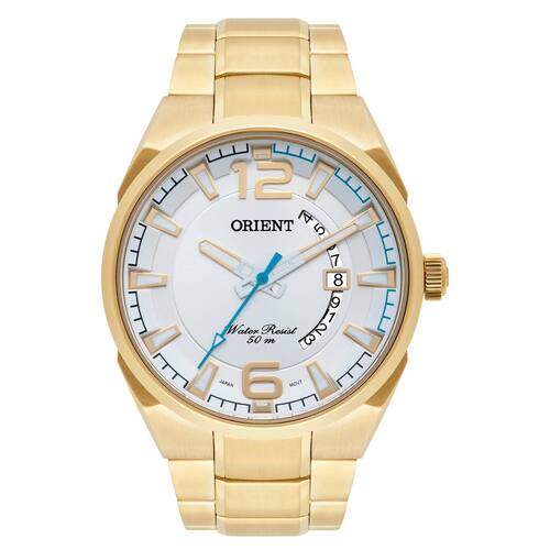 Relógio orient mgss1159 s2kx masculino / analógico / grande funções - analógico - calendário dia do mês características - analógico / quartz - coroa: simples - tampa posterior : rosqueada - resistência à água : 50m - vidro : cristal mineral - mostrador branco com cifras dourado - material da caixa : aço inox dourado - material da pulseira : aço dourado medidas - diâmetro da caixa : 4,5 cm - diâmetro do visor : 4 cm - espessura da caixa : 0,9 cm acompanha - manual - - embalagem orient - garantia de 1 ano