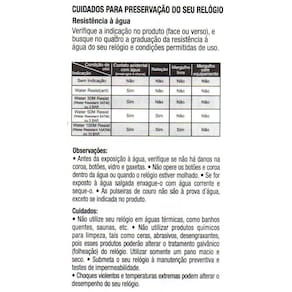 Resistência a água: 5 ATM (verifique condições permitidas de uso no manual)