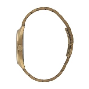 Seu mostrador dourado com efeito radial proporciona um visual refinado, enquanto os marcadores numéricos aplicados e ponteiros no mesmo tom garantem excelente legibilidade. O calendário na posição das 3 horas adiciona praticidade, mantendo o equilíbrio entre funcionalidade e estilo.