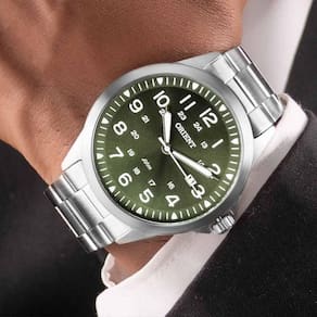 Características: com caixa Aço inoxidável e pulseira Aço inoxidável