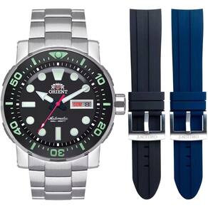 Características Formato do Relógio: Redondo Composição do Vidro: Cristal mineral Material da Caixa: Aço Inox Cor da Caixa: Prata Cor do mostrador: Azul,Preto Material da Pulseira: Aço Inox,Borracha Cor da Pulseira: Azul,Prata,Preto Mecanismo: Mecânico-Automático