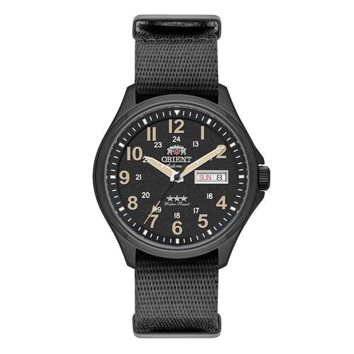 características: com caixa Aço inoxidável e pulseira Tecido Preto (Nato)