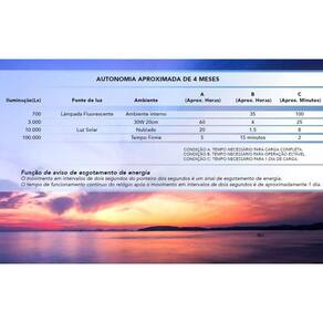 A luz como energia: O relógio solartech alia tecnologia e sustentabilidade. Com autonomia aproximada de quatro meses, o mecanismo solar transforma todas as luzes em energia para o seu funcionamento. Isso evita o descarte da bateria no meio ambiente.