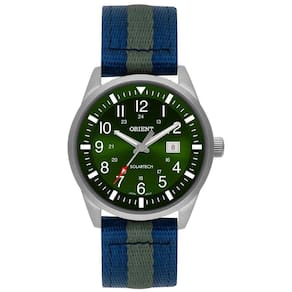Relógio Orient Solartech MBSS1453 E2SXCaixa: Aço inoxidávelPulseira: Aço inoxidável + pulseira adicional em nylonLargura pulseira: 22 mmPeso: 112 gramasMostrador: VerdeCaixa: 9.9 mm espessuraCaixa: 41.6 mm diâmetroCaixa: L2L de 47.7 mmMovimento: Movimento: SolarPrecisão: ±15 segundos por diaReserva de energia: 4 mesesFunção: Hora, calendário dia do mêsVidro: Cristal MineralFundo: Rosqueado resistência á água de até 50 metrosCoroa: SimplesInformações Adicionais: Index e ponteiros de hora e minutos com luminosidadeGarantia: 1 ano pelo fabricante