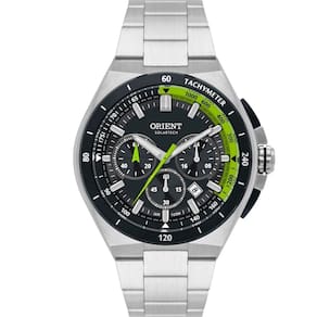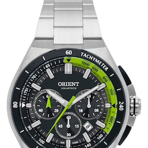 Especificações Técnicas: Marca: OrientReferência: MBSSC283 G1SXLinha: Neo SportsGênero: MasculinoCor da Pulseira: PrateadoCor da Caixa: PrateadoCor do Mostrador: PretoMaterial da Pulseira: Aço InoxidávelMaterial da Caixa: Aço InoxidávelTamanho da Caixa: 44 mm de diâmetroResistência à Água: 10 ATM (100 metros)Tipo de Movimento: Solar (recarregável por luz)Características do Vidro: Cristal MineralFunções: Cronógrafo, calendário e formato 12/24h