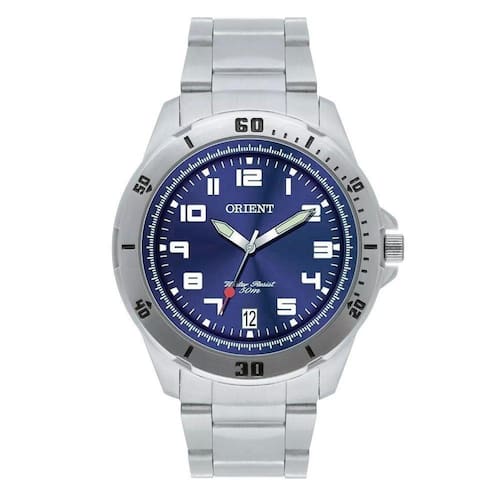 Relógio Orient Masculino MBSS1155A-D2SX. Possui mecanismo Analógico, a pulseira é na cor Prata, fabricada em Aço, com 25 cm de comprimento e possui Fecho Dobrável com Dois Botões.A Caixa (peça onde fica o mostrador) é fabricada em Aço, mede 4,3 cm de diâmetro, sem considerar a coroa, e 1,0 cm de espessura, o que é considerado tamanho Grande para relógios do gênero Masculino. Acompanha: Certificado De Garantia Manual De Instruções Cupom Fiscal Estojo Original Da Orient