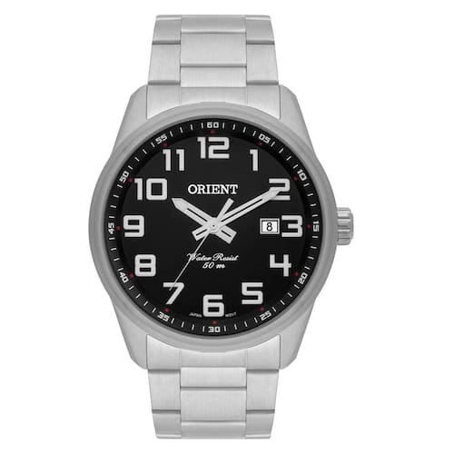 O relógio ORIENT MBSS1271 P2SX aqui apresentado é movido a bateria / sistema de energia Quartz, mecanismo analógico, todo em aço inox prata, mostrador preto com profundidade, calendário, vidro cristal mineral e resistência à água 5ATM.