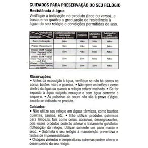 Resistência a água: 3 ATM (verifique condições permitidas de uso no manual)