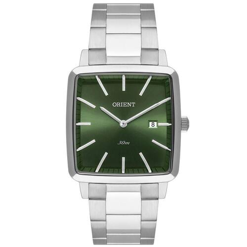 Mecanismo: Quartz (Bateria) Gênero: Masculino Visor: Verde Vidro: cristal mineral Funções: calendário Prova d'água: 30m Características: com caixa em aço inoxidável e pulseira em aço inoxidável Diâmetro da caixa: 36 mm