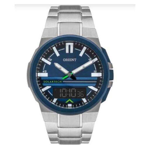Relógio orient solar tech masculino anadigi mtssa007AnadigiGênero: masculinoVisor: azulVidro: cristal mineralFunções: solar, calendário, cronógrafo, timer, alarme, dual timePressão: 100mCaracterísticas: com caixa em aço aro em bio ceramic e pulseira em açoDiâmetro da caixa: 46 mm