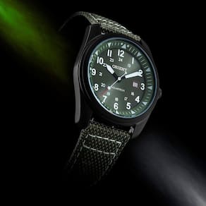 Movimento: Solar Reserva de energia: 4 meses Gênero: Masculino Material da caixa: Aço Inoxidável + IP black Material da pulseira: Nato Nylon verde Vidro: Cristal Mineral Fundo: Rosqueado Diâmetro da caixa: 45mm Espessura da caixa: 11,2mm Peso: 73g Resistência a água: 100m Função: Hora, Calendário dia do mês Iluminação: Ponteiro de horas e minutos Garantia do fabricante: 12 meses Referência: MPSN1004 E2EB Código de barra: 7891529991213