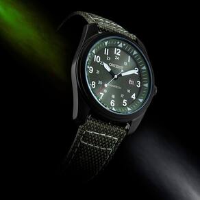 Movimento: Solar Reserva de energia: 4 meses Gênero: Masculino Material da caixa: Aço Inoxidável + IP black Material da pulseira: Nato Nylon verde Vidro: Cristal Mineral Fundo: Rosqueado Diâmetro da caixa: 45mm Espessura da caixa: 11,2mm Peso: 73g Resistência a água: 100m Função: Hora, Calendário dia do mês Iluminação: Ponteiro de horas e minutos Garantia do fabricante: 12 meses Referência: MPSN1004 E2EB Código de barra: 7891529991213