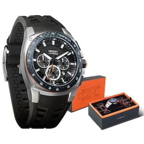 Desempenho e Tecnologia dos Carros de Competição A Orient Relógios é reconhecida mundialmente por sua excelência, com mais de 70 anos de história e uma constante busca por inovação e performance. Inspirada pelo universo do automobilismo, a coleção Speedtech combina tecnologia avançada e design dos carros de competição com a precisão e o alto desempenho característicos dos relógios Orient. Os relógios automáticos desta edição especial foram projetados com base em tecnologias de motores turbo, conhecidos por sua eficiência. Eles geram energia através do movimento do pulso, dispensando o uso de baterias. Além disso, a coleção conta com o mecanismo Solartech, que converte luz em energia, garantindo um funcionamento sustentável. Produzidos com materiais de alta performance, como titânio na caixa e na pulseira principal, e fibra de carbono no aro e no mostrador, os relógios proporcionam leveza, resistência e um visual esportivo. O vidro de cristal de safira oferece máxima nitidez e proteção contra arranhões. Para maior versatilidade, os modelos acompanham uma pulseira adicional em silicone, com design inspirado nas aberturas aerodinâmicas dos carros da Stock Car. CARACTERÍSTICAS - Fundo rosqueado - Movimento Solartech com autonomia de 6 meses - Resistência à água: 100m - Cronógrafo Solartech - Ponteiro indicador 24 horas - Caixa em titânio - Pulseira em titânio - Pulseira em silicone - Exclusivo Quick Release System para facilitar a troca das pulseiras sem o uso de ferramentas - Aro externo em fibra de carbono com indicação dos minutos - Mostrador em camadas com fibra de carbono ao centro - Ponteiros e indexes luminosos - Vidro em cristal de safira antirreflexo - Caixa com 43,5mm
