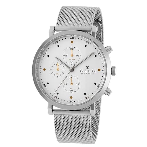 O Relógio OSLO Masculino Slim OMBSSCVD0008 S1SX aqui apresentado possui mecanismo ógico, caixa e pulseira de aço inox, cronógrafo, vidro de safira e resistência à água 3ATM. Este produto acompanha Manual em Português e , Embalagem de Fabrica e Nacional do Fabricante. Cronógrafo Gênero: Masculino Visor: Prata Vidro: Safira Funções: Cronógrafo Pressão: 30 Metros Características: com caixa Aço e pulseira Mesh em Aço Diâmetro da caixa: 42 mm Marca: Não Informado