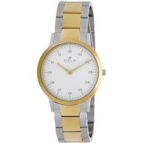Relógio Oslo Feminino Ref: Oftsss9t0066 B2sk Slim Bicolor DESCRIÇÃO DO PRODUTO: Caixa: Aço Pulseira: Aço Diâmetro da caixa: 32MM Altura da caixa: 7MM Vidro: Safira Resistência à água: 30m Funções: Analogico, Slim Fundo: Pressão Alimentação do Maquinário: Bateria Mostrador Branco com Todos os Números Prateado com Dourado