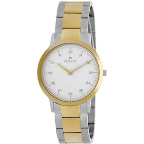 Relógio Oslo Feminino Ref: Oftsss9t0066 B2sk Slim Bicolor DESCRIÇÃO DO PRODUTO: Caixa: Aço Pulseira: Aço Diâmetro da caixa: 32MM Altura da caixa: 7MM Vidro: Safira Resistência à água: 30m Funções: Analogico, Slim Fundo: Pressão Alimentação do Maquinário: Bateria Mostrador Branco com Todos os Números Prateado com Dourado de 1 ano Marca: Não Informado