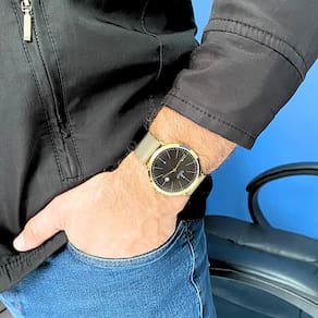 Marca: Oslo Modelo: OMGSSS9U0003 P1KX Tipo de relógio: Analógico Gênero: Masculino Cor da caixa: Dourado Cor da pulseira: Dourado Estilo: Casual Alarme: Não Cronômetro: Não Calendário: Sim Luz: Não – marcadores fluorescentes Resistência à água: Sim – 3 ATM = 30 metros Tipo de fecho: Fivela de gancho Material da caixa: Aço Inoxidável Material da pulseira: Mesh de Aço inoxidável Características do vidro: Safira Tamanho da caixa: 41 mm Espessura da caixa: 6 mm Comprimento da pulseira: 24 cm Largura da pulseira: 22 mm Tampa do fundo: Pressão Peso: 48 Gramas Alimentação: Bateria Garantia do Fabricante: 12 meses Fabricante: Orient Relógios da Amazônia LTDA