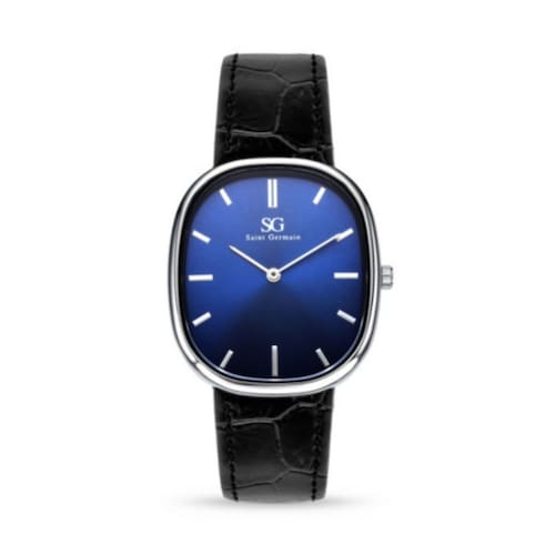 O Moncler Oval Croco, da Saint Germain, é um relógio que une o charme tradicional do couro com um design moderno e marcante. Sua caixa oval em prata polida, combinada com o mostrador azul escovado e a pulseira de couro preta com textura croco, cria um visual elegante e imponente — perfeito para quem busca exclusividade sem excessos.