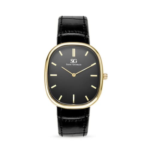 O Moncler Oval Croco Dourado, da Saint Germain, reúne elegância clássica com um formato moderno e marcante. Sua caixa dourada oval, combinada ao mostrador preto minimalista, cria um contraste sofisticado e poderoso. A pulseira de couro preta com textura croco reforça o acabamento refinado e o estilo elegante que se adapta com facilidade a diferentes ocasiões.