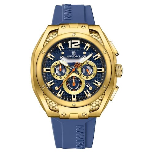 Fabricado com materiais de alta qualidade, Que impressiona não apenas pela aparência imponente, mas também pela sua durabilidade inigualável. Este relógio esportivo é equipado com um cronógrafo preciso e resistência à água de até 3 bar, garantindo que você esteja preparado para qualquer desafio.