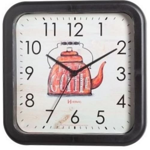 Relógio Parede 23cm Silencioso Preto Quadrado Cozinha Herweg 660052S-034