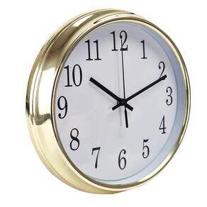 Relógio Parede 30cm Moderno Silencioso Números Grandes Cor: Dourado Relógio Parede 30cm Borda Metal Silencioso Números Grandes