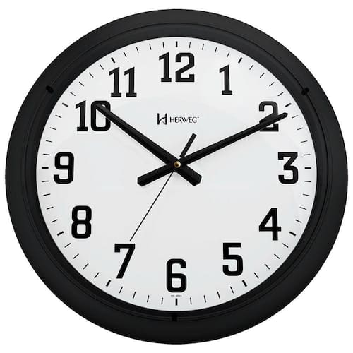 Relógio de Parede - 6129Estilo: ModernoMedidas: 40x40x5 cmCaracterísticas Técnicas: Disponível na linha promocional Usa pilha AA 1,5 volts Mecanismo StepCores Disponíveis: PretoMais Informações sobre o produtoRelógio de parede Base em Plástico Injetado PretoVisor de Vidro Mineral Botões de regulagem na parte traseira do produto Usa 1 pilha AA 1,5V que não acompanha o produto